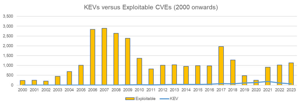 CISA’s Known Exploited Vulnerabilities (KEV) catalog identifies vulnerabilities that are actively being exploited in the wild. These represent clear and present danger to organisations.